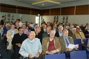 Um 11.00 Uhr trafen sich die angereisten Gäste und Freunde von St. Klemens zunächst im großen Sitzungssaal des Driburger Rathauses, um eine Ausstellung zur Geschichte des Studienheimes zu eröffnen. Nach einem Sektempfang begrüßte Bürgermeister Burkhard Deppe alle Anwesenden und wies auf die Bedeutung hin, die das Studienheim in früheren Jahrzehnten für die Kurstadt Bad Driburg hatte. Dann ergriff Prälat Bruno Kresing aus Paderborn das Wort. Als ehemaliger Generalvikar des Erzbistums hatte er von 1974 bis 2002 als Vorsitzender des Clemens-Hofbauer-Hilfswerkes für Priesterspätberufe e.V. die Geschicke des Studienheims maßgeblich geprägt. Er würdigte die Leistung von StD iR Peter Möhring, der mit großer Sachkenntnis und viel Liebe zum Detail die Ausstellung zur Geschichte von St. Klemens konzeptioniert hatte. Schließlich führte Peter Möhring selbst in die Ausstellung ein, die bei allen Anwesenden auf großes Interesse stieß. Aufgrund des großen Zuspruchs wurde die Ausstellung über die ursprünglich geplanten 4 Wochen hinaus um zwei Wochen verlängert bis Ende Oktober 2012.