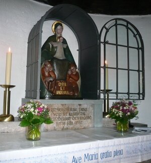 • Am Sonntag, dem 6. Mai 2012, wurde von Rektor Hohmann in der Waldkapelle Bad Driburg um 17.00 Uhr eine Maiandacht gehalten, um auf diese Weise die frisch restaurierte Schutzmantel-Madonna der Öffentlichkeit zurückzugeben. Sie war in den letzten Jahrzehnten mehrfach beschädigt worden und wurde in den letzten Monaten in ihrer ursprünglich farblichen Fassung fachkundig restauriert. Die Figur war übrigens am 6. Mai 1934 eingeweiht worden, sie steht jetzt also exakt 78 Jahre in unserer Waldkapelle! → Einen Bericht finden Sie hier: Newsarchiv: 6. Mai 2012