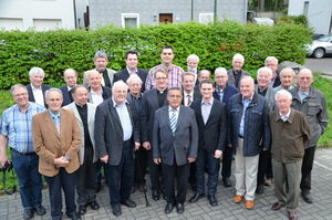 Altklementiner im Kreis von Rektor Hohmann, StD iR Peter Möhring und dem früheren Präfekten Dr. Arnurlf Vagedes am 3. Mai 2012 in Belecke (Foto: Westfalenpost, Susanne Löbbert)